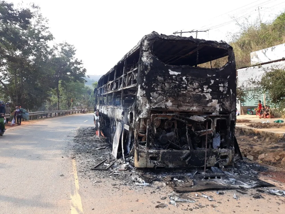 Theo đó, vào lúc 1 giờ 15 phút ngày 4-4 tại Km 1440+200 đường Hồ Chí Minh đoạn qua huyện Đắk Glei (tỉnh Kon Tum), xe ô tô khách mang BKS 48B-005.21 (thuộc nhà xe Dương Thảo) do Nguyễn Bá Hùng (40 tuổi, trú tại xã Phúc Thọ, huyện Nghi Lộc, tỉnh Nghệ An) điều khiển chạy tuyến Hà Tĩnh - Đắk Nông, khi đến địa điểm trên thì chiếc xe bất ngờ bị cháy.