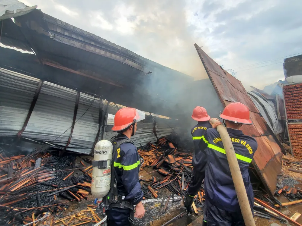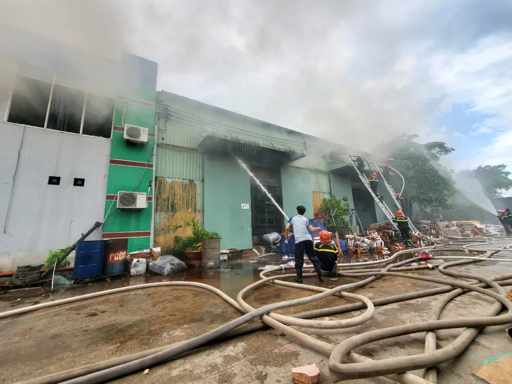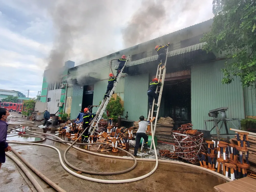 “Thời điểm lửa bùng phát, trong 2 xưởng có hàng trăm công nhân đang làm việc. Rất may, các công nhân đang nghỉ ca làm, sắp bước vào ca làm mới nên không bị ảnh hưởng gì... Trong xưởng chứa nhiều sản phẩm từ gỗ như: bàn, ghế, tủ... kèm theo thời tiết nóng bức khiến ngọn lửa bùng lên rất nhanh”, một nhân chứng vụ cháy cho hay.