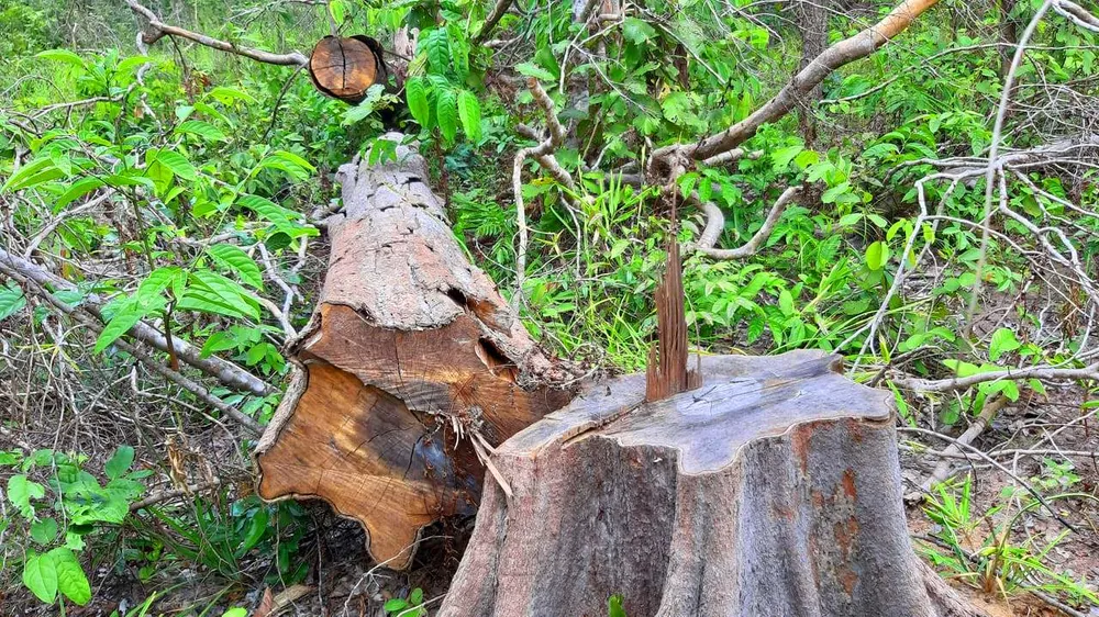 Như Báo SGGP Online đã phản ánh, cách hồ chứa nước Ia Mơ (xã Ia Mơ, huyện Chư Prông) khoảng 3km theo hướng về xã Ia Băng (huyện Chư Prông), chúng tôi rẽ vào đường xương cá và thấy có hàng chục cây gỗ bị đốn hạ. Có nhiều cây gỗ to, lâm tặc đã cưa hạ, xẻ thành hộp nhưng chưa kịp chở đi. Nhiều cây gỗ khác sau khi bị cưa hạ thì vứt lại vì rỗng ruột. Có nhiều cây thân gỗ đã xẻ hộp mang đi.