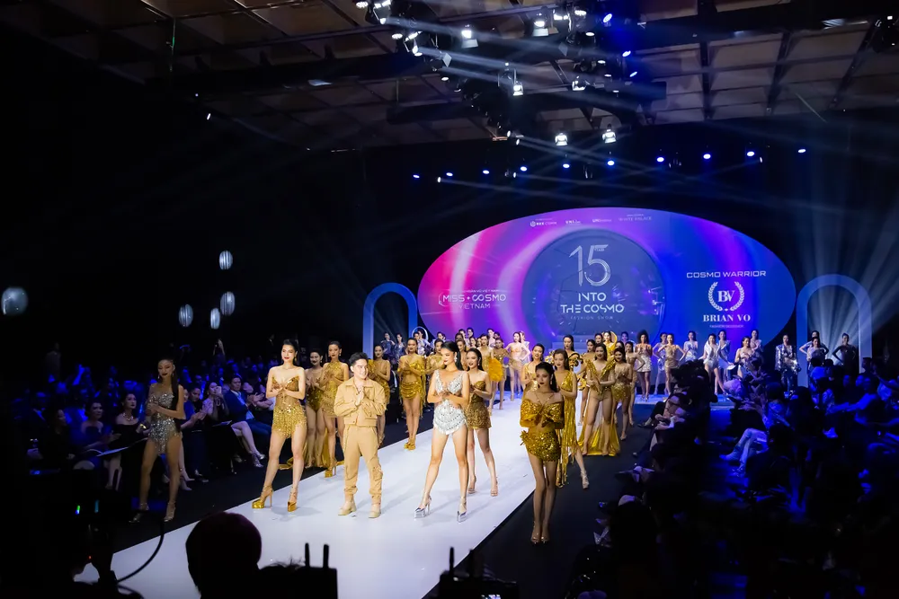 Show diễn “Into the cosmo fashion show” mang khán giả bước vào chuyến du hành “vũ trụ thời trang” với sân khấu hoành tráng, sáng tạo, mới lạ cùng 5 bộ sưu tập từ các nhà thiết kế: NTK Lê Ngọc Lâm, NTK Nguyễn Tiến Truyển, NTK Brian Võ, Mr Crazy & Lady Sexy và Myan.