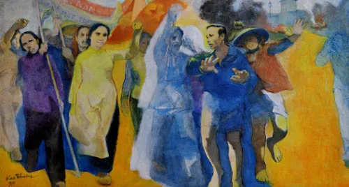 Ký họa Biểu tình ủng hộ Nam bộ kháng chiến của họa sĩ Nguyễn Cao Thương