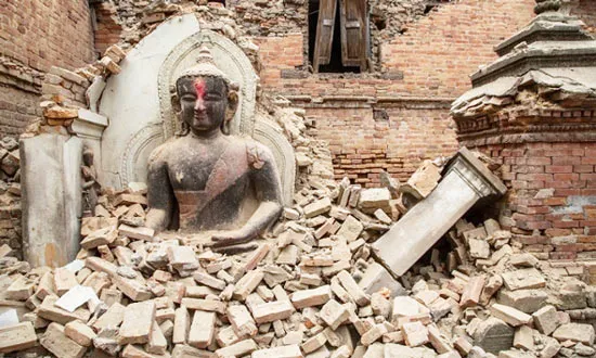 Tượng Phật được UNESCO công nhận là di sản văn hóa thế giới ở Bhaktapur còn sót lại trong một ngôi chùa đổ nát sau trận động đất
