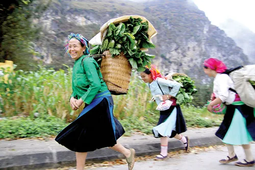 Phụ nữ mang sản vật xuống chợ buôn bán.