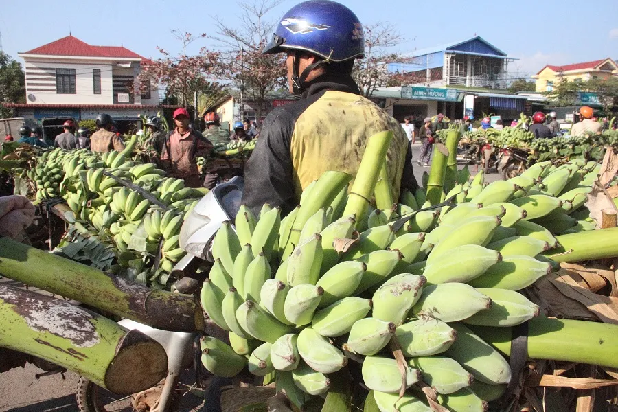 Chuối thường được bán theo xe, ít khi bán lẻ từng buồng. Mỗi ngày, người dân thu nhập từ vài triệu đến vài chục triệu đồng nhờ bán chuối dịp tết.