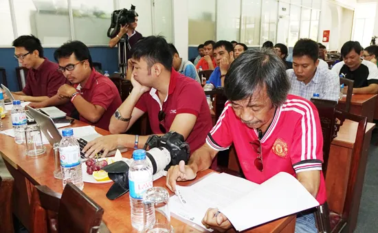 Đại diện BTC- Báo SGGP giới thiệu trận bóng đá giao hữu. Ảnh: Hoàng Hùng