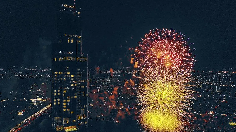 Landmark 81 là địa điểm bắn pháo hoa cao nhất tại TPHCM (góc từ sông)