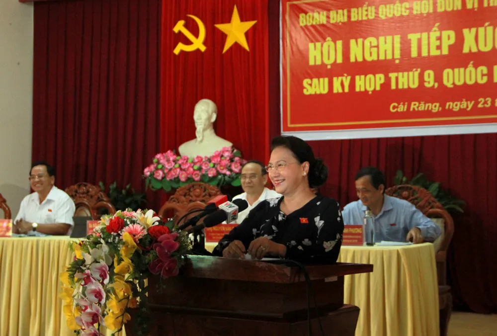 Tiếp nhận ý kiến của các cử tri, Chủ tịch Quốc hội Nguyễn Thị Kim Ngân bày tỏ sự cảm ơn trước sự tin tưởng, ủng hộ của người dân trong việc cùng Đảng, Nhà nước đoàn kết một lòng, tạo nên sức mạnh dân tộc, cùng nhau đẩy lùi dịch bệnh Covid-19. Chủ tịch Quốc hội cho rằng: "Những thành công trong công tác phòng, chống dịch bệnh Covid-19 của nước ta là thành quả chung của cả dân tộc".