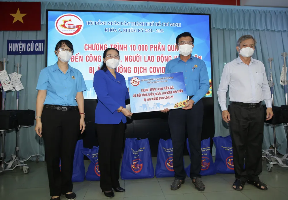 Ngày 11-8, Thường trực HĐND TPHCM phối hợp với tổ đại biểu HĐND TPHCM đơn vị huyện Củ Chi tổ chức chương trình 10.000 phần quà đến công nhân, người lao động khó khăn bị ảnh hưởng bởi dịch Covid-19 tại huyện Củ Chi. Đến dự có đồng chí Nguyễn Thị Lệ, Phó Bí thư Thành ủy, Chủ tịch HĐND TPHCM.