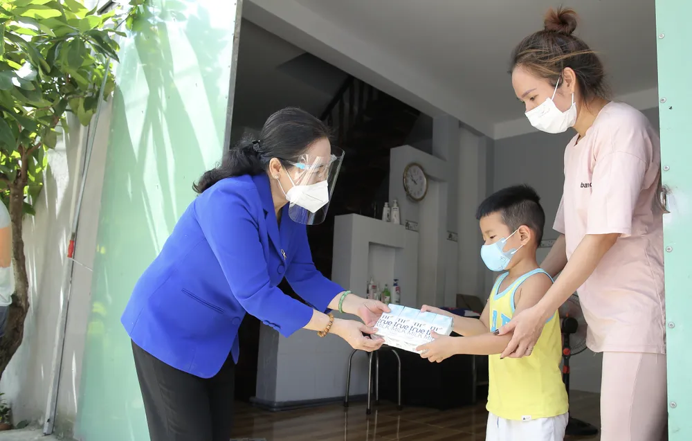 Chủ tịch HĐND TPHCM Nguyễn Thị Lệ trao quà tận tay người lao động trong khu nhà trọ tại huyện Củ Chi. Ảnh: DŨNG PHƯƠNG