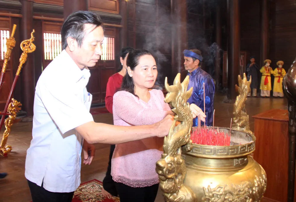 Đồng chí Nguyễn Thị Lệ cùng đồng chí Đoàn Văn Phi, Phó Chủ tịch Thường trực HĐND tỉnh Bình Định dâng hương tại Bảo tàng Quang Trung