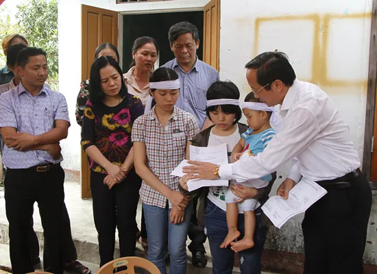 Ông Đặng Ngọc Sơn, Phó Chủ tịch UBND tỉnh Hà Tĩnh thăm hỏi, động viên, trao thư khen và quà của Chủ tịch nước cho em Trần Thị Sáng