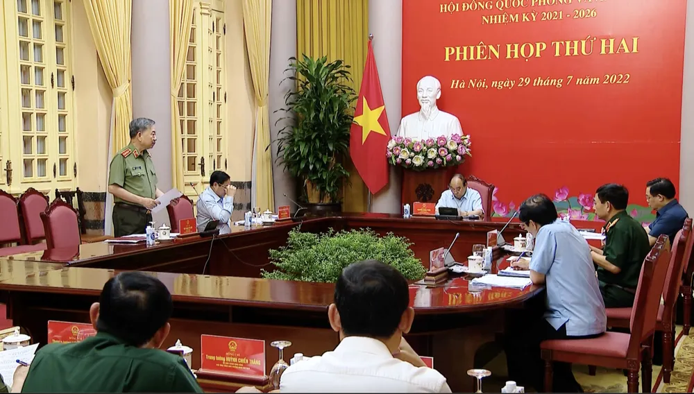 Chủ tịch nước Nguyễn Xuân Phúc chủ trì Phiên họp thứ hai Hội đồng Quốc phòng và An ninh ảnh 1 Chủ tịch nước Nguyễn Xuân Phúc chủ trì Phiên họp thứ hai Hội đồng Quốc phòng và An ninh, nhiệm kỳ 2021-2026. Ảnh: QUẾ SƠN