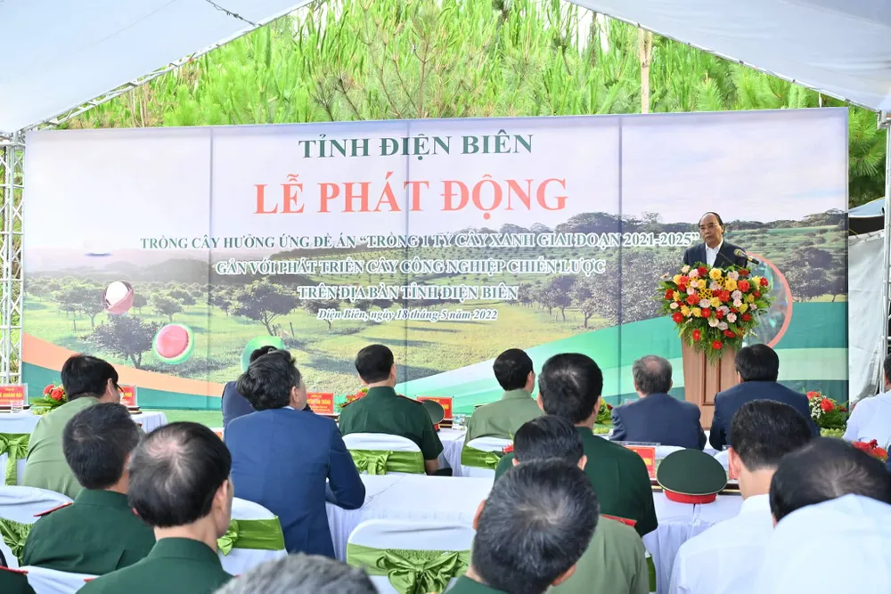 Ngay sau lễ khánh thành đền thờ, Chủ tịch nước Nguyễn Xuân Phúc đã thực hiện nghi thức trồng cây trong lễ phát động trồng cây hưởng ứng “Đề án trồng 1 tỷ cây xanh giai đoạn 2021-2025 gắn với phát triển cây công nghiệp chiến lược trên địa bàn tỉnh Điện Biên”.