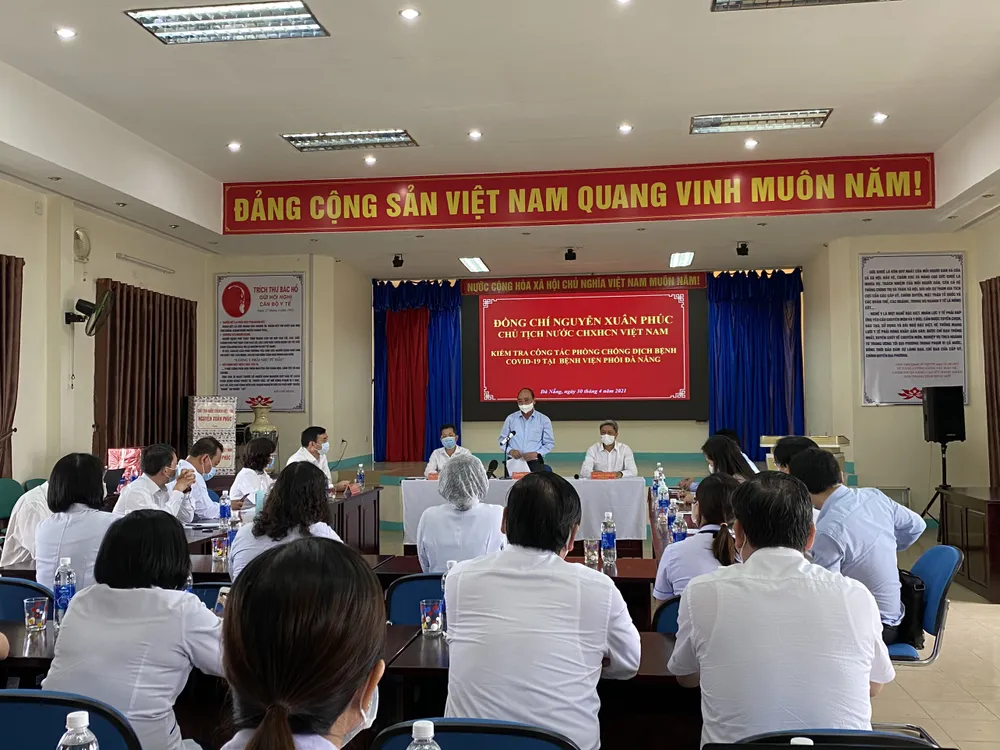 Sáng 30-4, Chủ tịch nước Nguyễn Xuân Phúc đã đến kiểm tra công tác phòng chống dịch Covid-19 tại Bệnh viện Phổi Đà Nẵng.