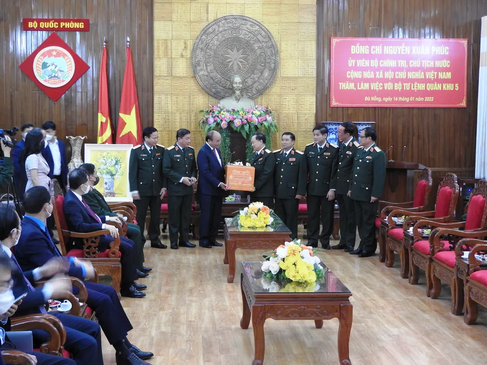 Chủ tịch nước Nguyễn Xuân Phúc ghi nhận, đánh giá cao những nỗ lực của Quân khu 5 đạt được trong năm qua.