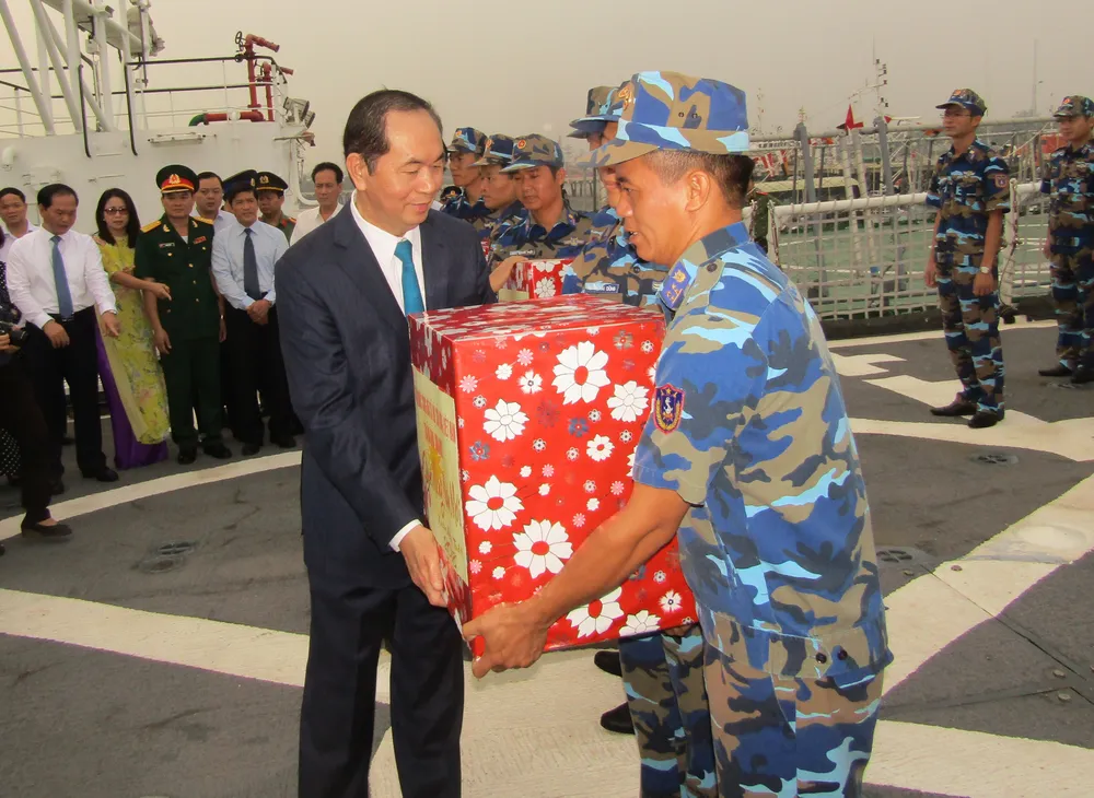 Sau khi thăm các cán bộ, chiến sỹ Bộ tư lệnh Vùng Cảnh Sát biển 3, Chủ tịch nước đã đến thăm, chúc Tết và tặng quà cho 2 gia đình chính sách tại TP Bà Rịa, tỉnh Bà Rịa –Vũng Tàu.