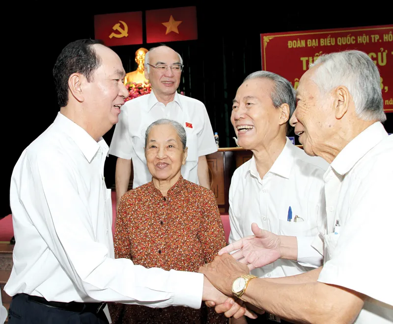 Chủ tịch nước Trần Đại Quang tiếp xúc với cử tri TPHCM . Ảnh: HOÀNG HÙNG