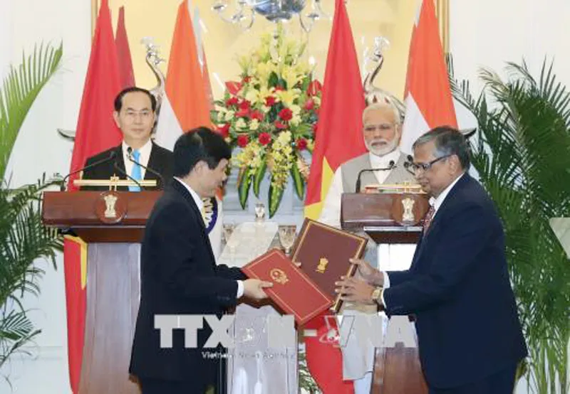 Sau hội đàm, Chủ tịch nước Trần Đại Quang và Thủ tướng Narendra Modi đã chứng kiến lễ trao các thỏa thuận hợp tác được ký kết nhân dịp này, gồm: Bản ghi nhớ giữa Bộ Công Thương Việt Nam và Bộ Công Thương Ấn Độ về hợp tác kinh tế, thương mại; Kế hoạch Hành động về hợp tác nông nghiệp giai đoạn 2018 - 2020; Bản ghi nhớ về hợp tác giữa Viện năng lượng Nguyên tử Việt Nam và Trung tâm đối tác năng lượng hạt nhân toàn cầu.
