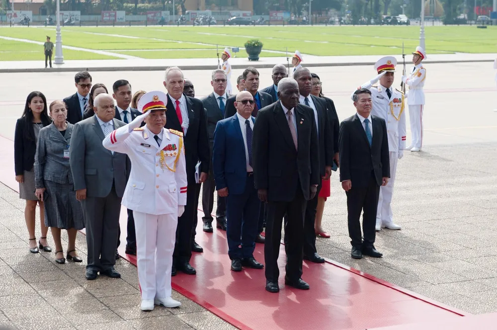 Trước đó, Chủ tịch Quốc hội Esteban Lazo Hernández và Đoàn đại biểu cấp cao Cuba đã đến đặt hoa tưởng niệm tại Lăng Chủ tịch Hồ Chí Minh.