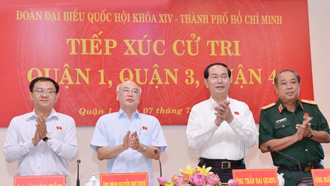 Tham dự cuộc tiếp xúc cử tri còn có Phó Chủ tịch UBND TPHCM Lê Thanh Liêm, đại diện lãnh đạo các sở ngành, UBND quận 1, 3, 4.
