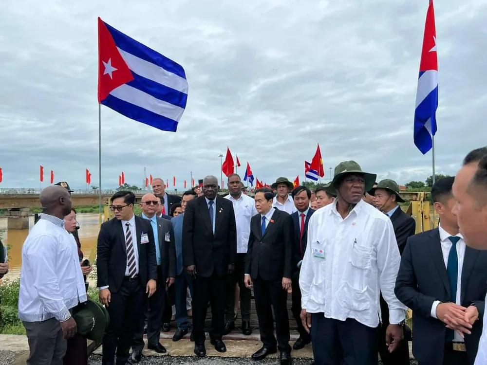 Đến thăm Di tích lịch sử quốc gia đặc biệt đôi bờ Hiền Lương - Bến Hải, Chủ tịch Quốc hội Chính quyền Nhân dân Cuba cùng đoàn đại biểu cấp cao Cuba đã trò chuyện cùng cán bộ, nhân dân địa phương, ngắm nhìn Quốc kỳ Việt Nam tung bay trên kỳ đài Hiền Lương.