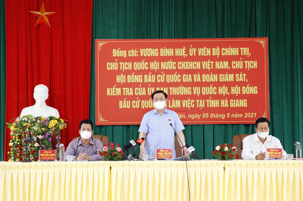 Tại buổi làm việc với lãnh đạo tỉnh, Ủy ban Bầu cử tỉnh Hà Giang tại huyện Đồng Văn, Chủ tịch Quốc hội Vương Đình Huệ đánh giá cao công tác chuẩn bị nhân sự của tỉnh Hà Giang. Nhân sự giới thiệu ứng cử đại biểu Quốc hội và ứng cử đại biểu HĐND các cấp đều đạt được tín nhiệm, đồng thuận, nhất trí cao, đảm bảo chất lượng, các cơ cấu kết hợp. Tuy nhiên, do đặc thù của tỉnh Hà Giang là vùng biên mậu, số lượng cư dân qua lại biên giới Việt Nam-Trung Quốc rất nhiều; cùng với đó có nhiều người thuộc diện phải cách ly tập trung hay cách ly tại nhà để phòng chống dịch bệnh… nên tỉnh cần chú ý rà soát kỹ lưỡng danh sách cử tri để bảo đảm quyền bầu cử của công dân theo quy định của Hiến pháp và pháp luật.