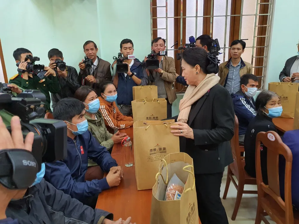 Dịp này, Chủ tịch Quốc hội tặng quà và hỗ trợ kinh phí đến 121 người dân vùng sạt lở Phước Sơn; thăm và tặng quà đến gia đình chính sách ở huyện Phước Sơn.