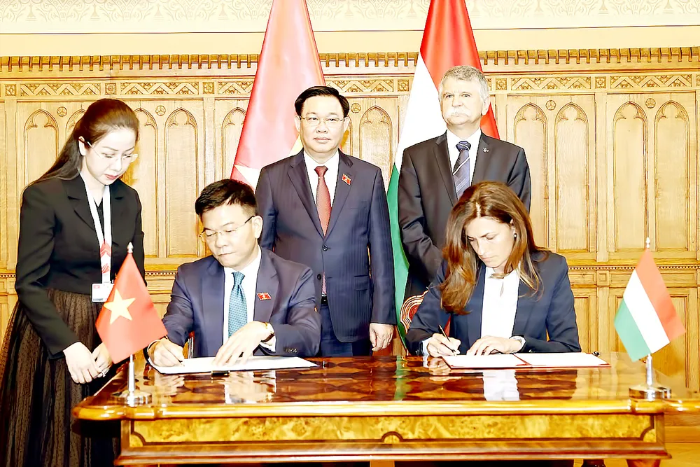 | Trong khuôn khổ chuyến thăm, Bộ trưởng Bộ Tư pháp Việt Nam Lê Thành Long và Bộ trưởng Bộ Tư pháp Hungary Judit Varga đã ký Chương trình hợp tác giữa hai Bộ Tư pháp giai đoạn 2022-2023 trước sự chứng kiến của Chủ tịch Quốc hội hai nước. Cũng trong ngày 27-6, hai Bộ trưởng đã có buổi làm việc song phương để trao đổi các biện pháp thúc đẩy hơn nữa hợp tác pháp luật và tư pháp giữa hai Bộ Tư pháp. |