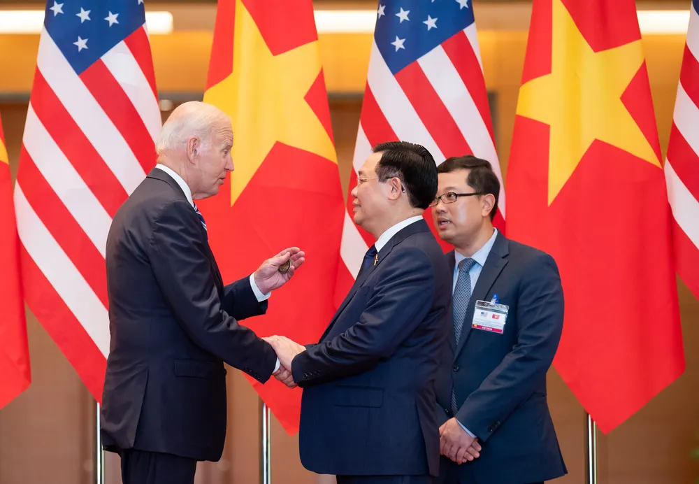 Tại cuộc hội kiến, Chủ tịch Quốc hội Vương Đình Huệ và Tổng thống Joe Biden đã chứng kiến lãnh đạo Hội Cựu chiến binh, Bộ Quốc phòng Việt Nam trao tặng các kỷ vật chiến tranh cho phía Bộ Quốc phòng Hoa Kỳ - hành động có tính biểu tượng và nhân văn sâu sắc.