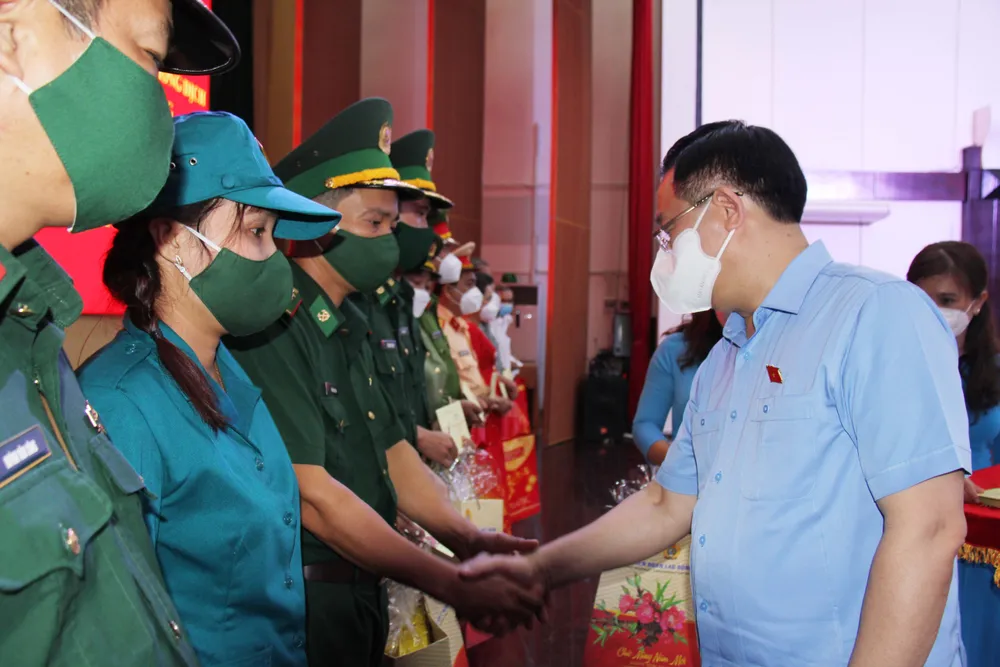 Đoàn công tác còn dự chương trình tặng quà Tết cho gia đình chính sách, người có công; lực lượng vũ trang; lực lượng tuyến đầu phòng chống dịch Covid – 19; hộ nghèo, hộ có hoàn cảnh khó khăn do dịch bệnh Covid – 19; công nhân lao động…