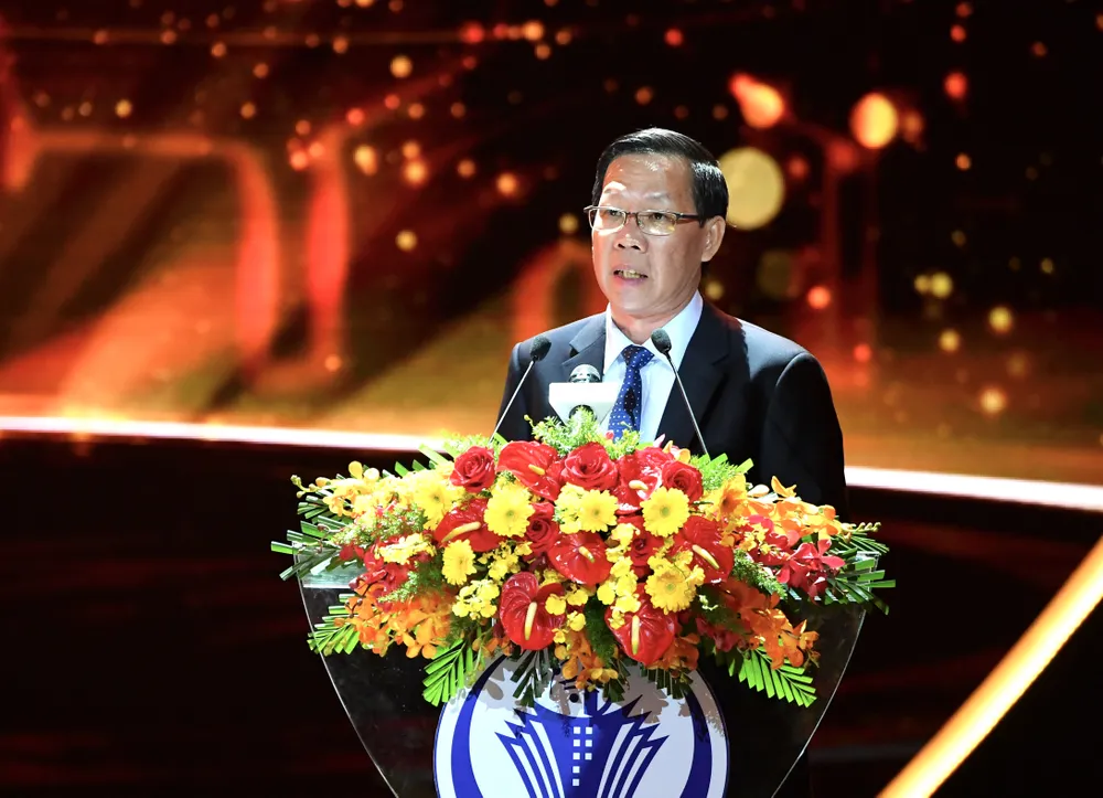 Chủ tịch UBND TPHCM Phan Văn Mãi phát biểu tại buổi lễ. Ảnh: VIỆT DŨNG
