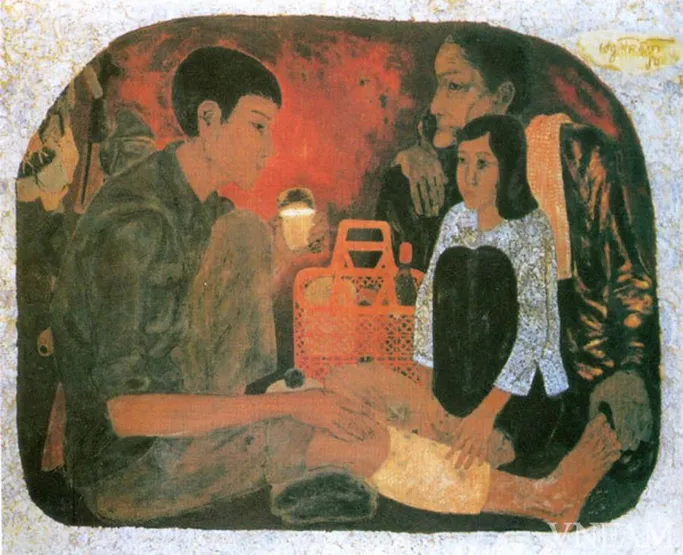 Chùm tác phẩm về đề tài kháng chiến chống Mỹ ảnh 5 Tác phẩm Nắng xuân 1975, sơn dầu, tác giả Nguyễn Quang Thọ