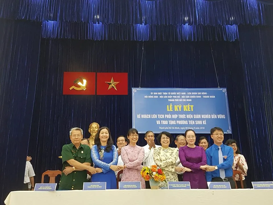 Tiếp tục thực hiện các nội dung giảm nghèo bền vững theo tiêu chí mới của TPHCM, Ủy ban MTTQ Việt Nam TPHCM và các tổ chức chính trị, xã hội cùng phối hợp trách nhiệm thực hiện các mục tiêu giảm nghèo bền vững, vận động toàn dân hưởng ứng phong trào “Thành phố chung sức giảm nghèo bền vững”, “Cả nước chung tay vì người nghèo”, không để một hộ nghèo, hộ chính sách khó khăn nào mà không có một tổ chức hỗ trợ, tư vấn thoát nghèo, không để ai bị bỏ lại phía sau. Để thực hiện tốt mục tiêu này, Ban Thường trực Ủy ban MTTQ Việt Nam TPHCM cùng đại diện các tổ chức thành viên: LĐLĐ, Hội Nông dân, Hội LHPN, Hội Cựu chiến binh, Thành đoàn TNCS đã ký kết liên tịch thực hiện các nội dung: Tuyên truyền về công tác giảm nghèo bền vững; vận động các nguồn lực hỗ trợ hộ nghèo, hộ cận nghèo, hộ còn nhiều khó khăn trong cuộc sống; chăm lo gia đình chính sách khó khăn, hộ nghèo, hộ cận nghèo, hộ còn nhiều khó khăn và giám sát việc thực hiện giảm nghèo bền vững.