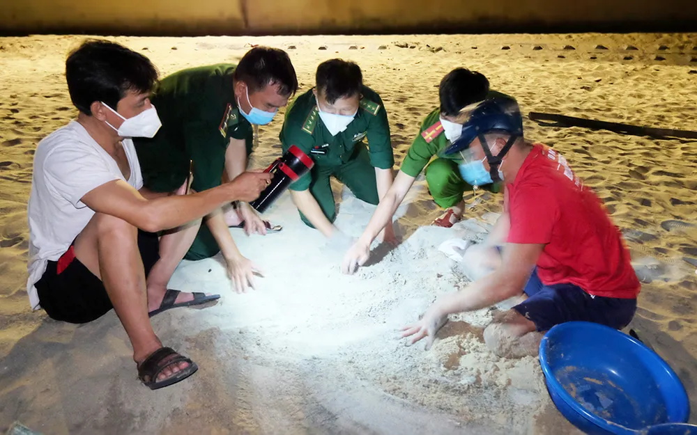 Trứng rùa ven vịnh Quy Nhơn được đưa lên nơi an toàn để đảm bảo rùa con nở