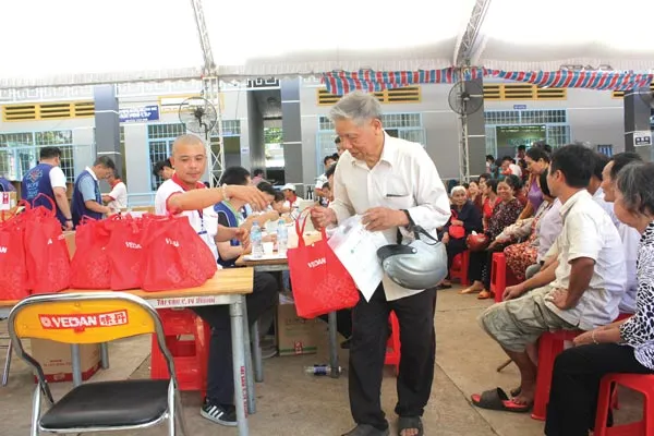 Người dân vừa khám bệnh còn được nhận quà của Công ty Vedan