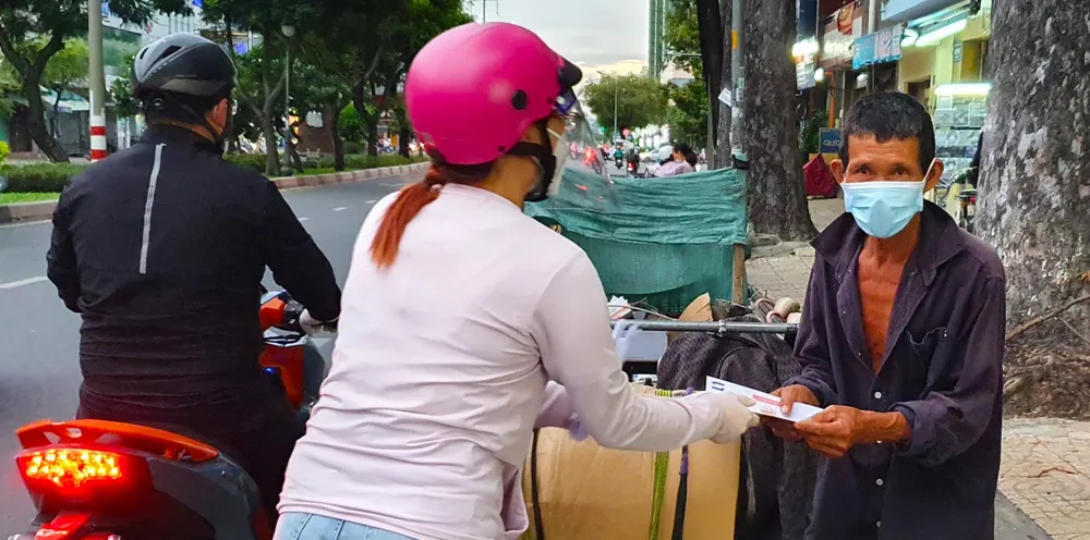 “Dựa trên tổng số tiền 12,4 triệu đồng và chia ra cho mỗi phong bì 100 ngàn đồng thì như vậy nhóm chúng tôi giúp đỡ được 124 người có hoàn cảnh thật sự khó khăn. Cầu mong với chút quà nhỏ nhoi này, những người mưu sinh hè phố có thêm ít tiền để duy trì cuộc sống, cảm thấy ấm lòng mùa dịch”, anh Nguyễn Đức Duy, trưởng nhóm thiện nguyện chia sẻ.