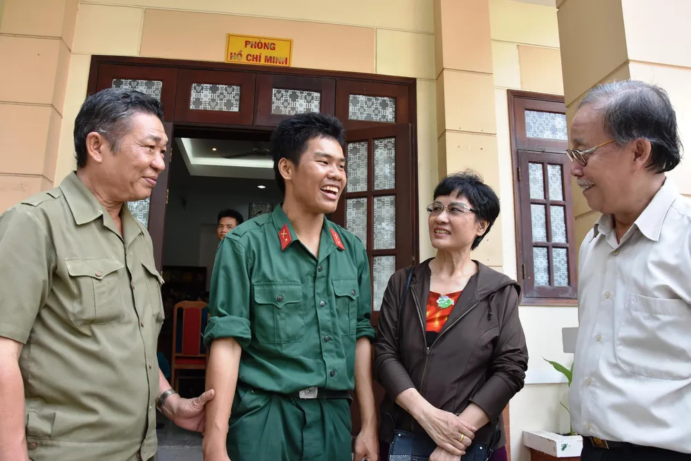 Bà kể lại những chuyện thời bà tham gia Trung đội nữ du kích Củ Chi (thành lập năm 1965) và dặn dò, động viên cháu trai cùng các bạn trẻ rèn luyện thể lực tốt, có ý chí lập trường kiên định, xứng danh Bộ đội Cụ Hồ.