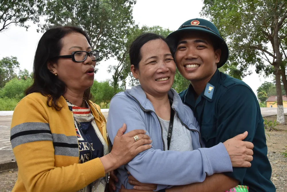 Chiến sĩ Lưu Phước Lộc (sính 1994) hạnh phúc ngày gặp được mẹ