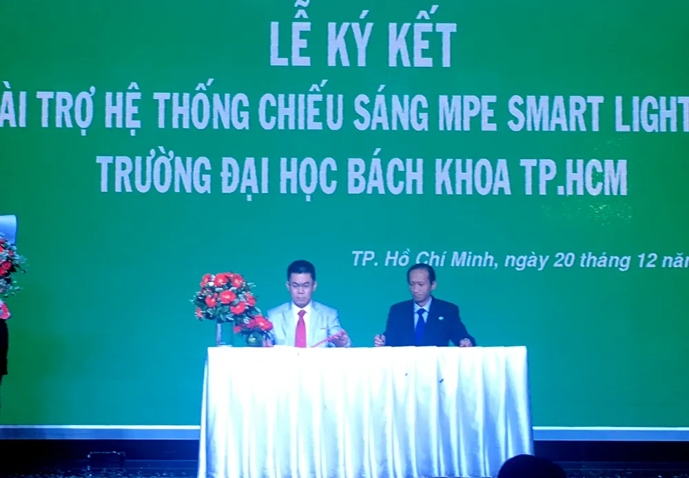 Nhân dịp này, Công ty MPE tài trợ 500 triệu thiết bị điện, thiết bị chiếu sáng, thiết bị chiếu sáng thông minh (500 triệu đồng) cho Trường Đại học Bách Khoa TPHCM để hỗ trợ trong công tác đào tạo và thực hành cho đội ngũ giảng viên và sinh viên chuyên ngành điện, điện tử.