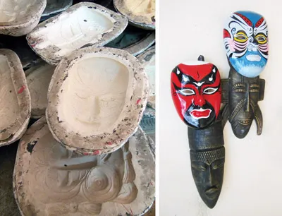 Trước tiên phải tạo khuôn mẫu bằng đất sét hoặc thạch cao, cho bột đá trắng xay nhỏ để tạo hình mặt nạ, chà nhám thật kỹ để màu vẽ bám lâu và đẹp hơn, phải mất 6g để hoàn thành một chiếc mặt nạ