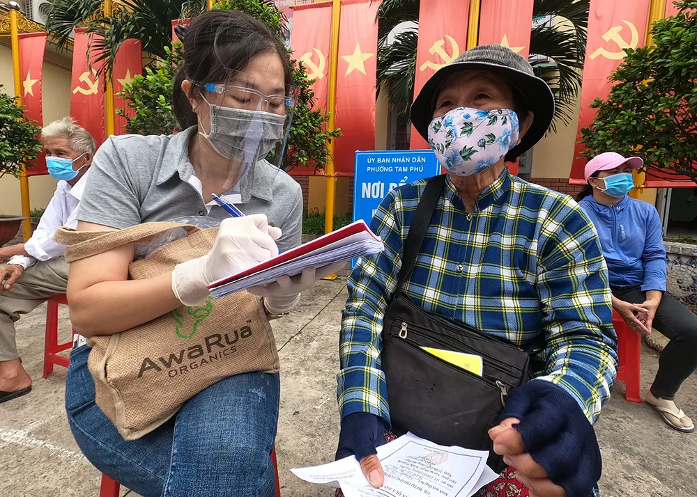 Đại diện địa phương, ông Lê Trung Cường, Chủ tịch Ủy ban MTTQ phường Tam Phú, TP Thủ Đức thông tin rằng: “Người nghèo, người nhập cư trên địa bàn hiện còn nhiều. Với số gạo hôm nay được chuyển tới địa phương, chúng tôi trực tiếp tiến hành trao tận tay cho các hoàn cảnh hộ nghèo, người bán vé số, công nhân khó khăn, các trường hợp đặc biệt khó khăn trong lúc dịch bệnh thế này. Quả thực, những phần gạo của Báo SGGP rất kịp thời và ý nghĩa”.