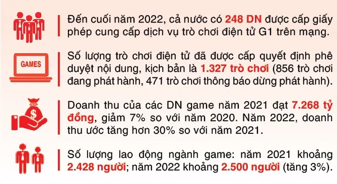 Số liệu của Cục Phát thanh - truyền hình và thông tin điện tử (Bộ TT-TT) cho thấy, chỉ có 15% trong 200 DN game đã đăng ký còn hoạt động tại Việt Nam. Trong khi đó, mỗi năm, game không phép xuyên biên giới đạt doanh thu 5.000 tỷ đồng, chiếm 30% tỷ trọng của thị trường phát hành game tại Việt Nam.