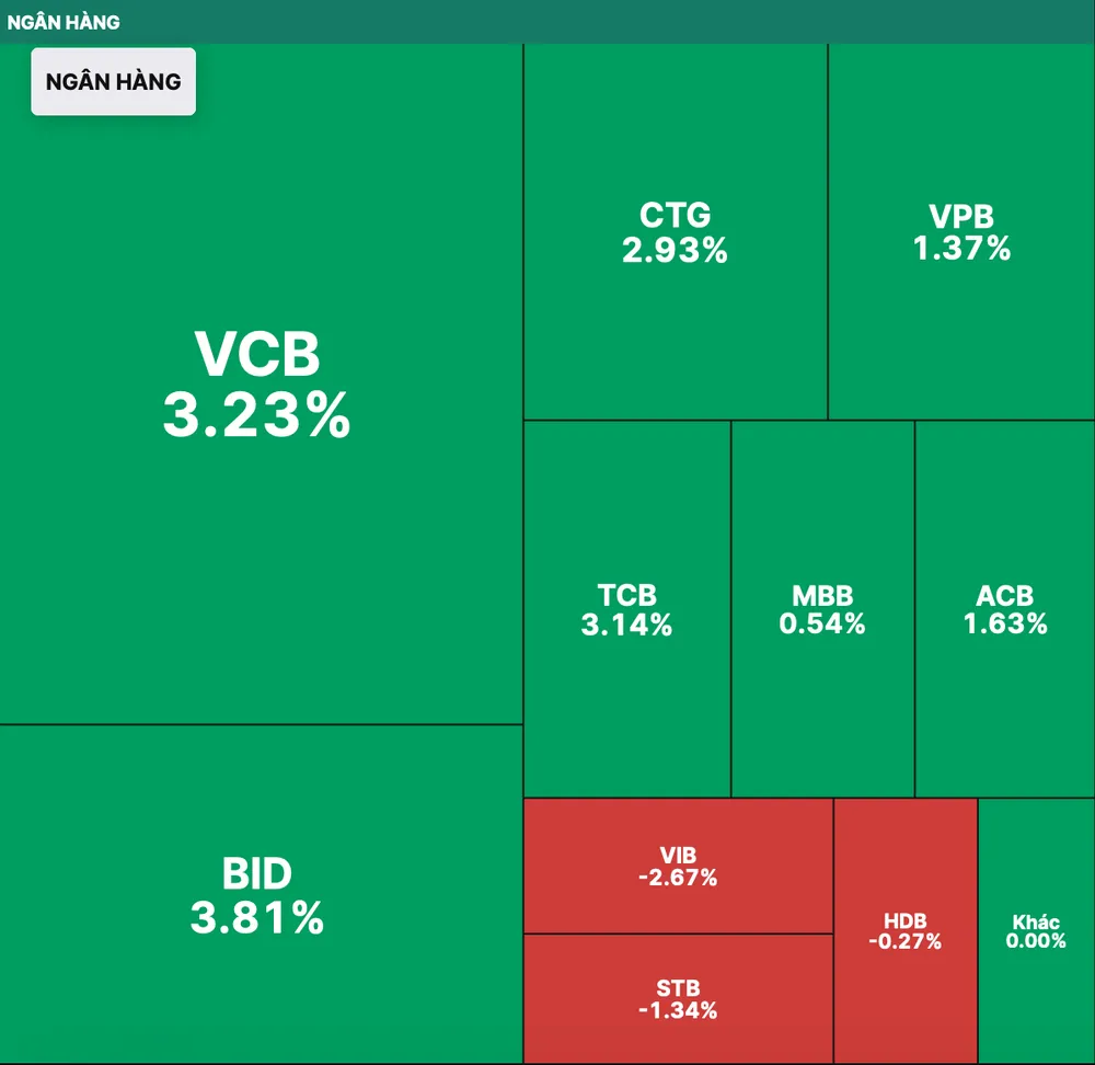 Thị trường chứng khoán Việt Nam trong phiên giao dịch ngày 6-2 với sự "nổi sóng" của nhóm cổ phiếu ngân hàng khiến VN-Index bật tăng gần 13 điểm, tiến sát 1.090 điểm trong khi có thời điểm trong phiên, chỉ số này rơi sát xuống 1.1070 điểm. Cụ thể, VCB tăng 3,23%, BID tăng 3,81%, CTG tăng 2,93%, TCB tăng 3,14%, VPB tăng 1,37%, MSB tăng 5,76%...