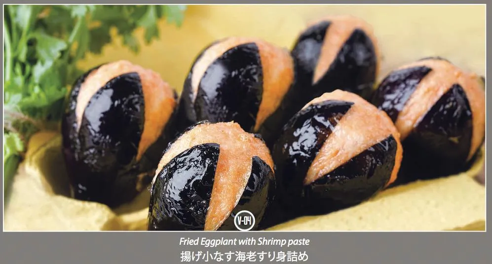 Tương tự như Đậu bắp nhồi hải sản, sản phẩm Cà tím nhồi hải sản cũng được làm theo kiểu công nghiệp với nhân hải sản thơm ngon, ngọt tự nhiên cho các kênh ăn vặt (xiên que), thích hợp cho các tiệc buffet, làm món khai vị (tiệc), dùng chung với lẩu thái - lẩu mắm.. Cà tím ở đây cũng được thu hoạch từ vùng nguyên rộng lớn của Cofidec, giống Nhật, trồng theo quy trình – quy cách – tiêu chuẩn của Nhật, có màu tím đậm, chỉ dùng những trái có kích cỡ nhỏ để đảm bảo được chất lượng tốt nhất – dinh dưỡng nhất.