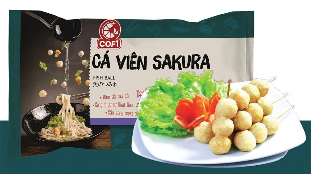 Sản phẩm cá viên SAKURA với thành phần chính là thịt cá basa và surimi loại 1 có nhiều đặc điểm nổi bật như khi chiên sẽ không quá phồng, không bị nhăn lúc để nguội, dai giòn tự nhiên. Chiết xuất tảo biển giúp cá viên có hương thơm và độ ngọt tự nhiên. Được đóng gói theo quy cách 200gr và 500gr, cá viên SAKURA giúp người tiêu dùng có nhiều lựa chọn phù hợp với bữa ăn trong gia đình.