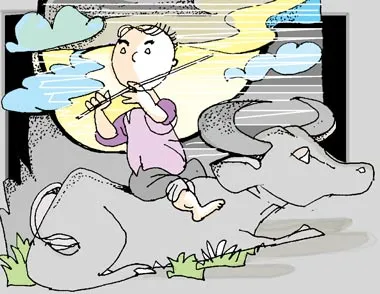 Con trâu dễ bảo nhu mì, nên xưa nay nhà nông thường cho trẻ con chăn dắt. Hình ảnh chú bé mục đồng chăn trâu thổi sáo, mô tả hình ảnh thanh bình trên quê hương. Ai bảo chăn trâu là khổ, chăn trâu sướng lắm chứ, ngồi mình trâu phất ngọn cờ lau... Cậu bé chăn trâu Đinh Bộ Lĩnh trong lịch sử nước ta đã từng phất ngọn cờ lau, dẹp loạn 12 sứ quân, thống nhất đất nước. Cậu bé chăn trâu Đào Duy Từ, người chỉ huy đắp lũy Trường Dục (tục gọi Lũy Thầy) nêu tấm gương kiên trì học tập, trở nên hiền tài...