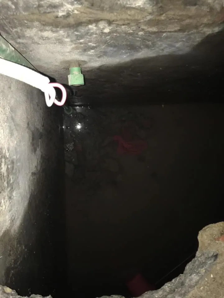 Công an cho hay, lối xuống bể có 2 đoạn dây điện bọc bằng ống nhựa trắng, 2 đầu dây điện được uốn vào trong, kiểm tra bằng bút thử điện có phát sáng. Ảnh Công an Hà Nội cung cấp