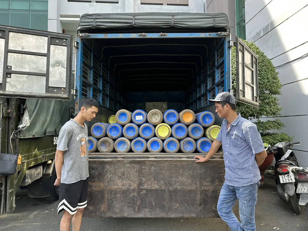 Vào ngày 21-6, Phòng PC05 phối hợp Công an huyện Bình Chánh và Phòng Cảnh sát giao thông đường bộ đường sắt (PC08), Công an TPHCM kiểm tra xe ôtô tải mang BKS: 51C-77494 do Trần Văn Hậu (sinh năm 1989, ngụ quận 12) điều khiển và phát hiện trên xe đang vận chuyển 70 bình khí N2O.