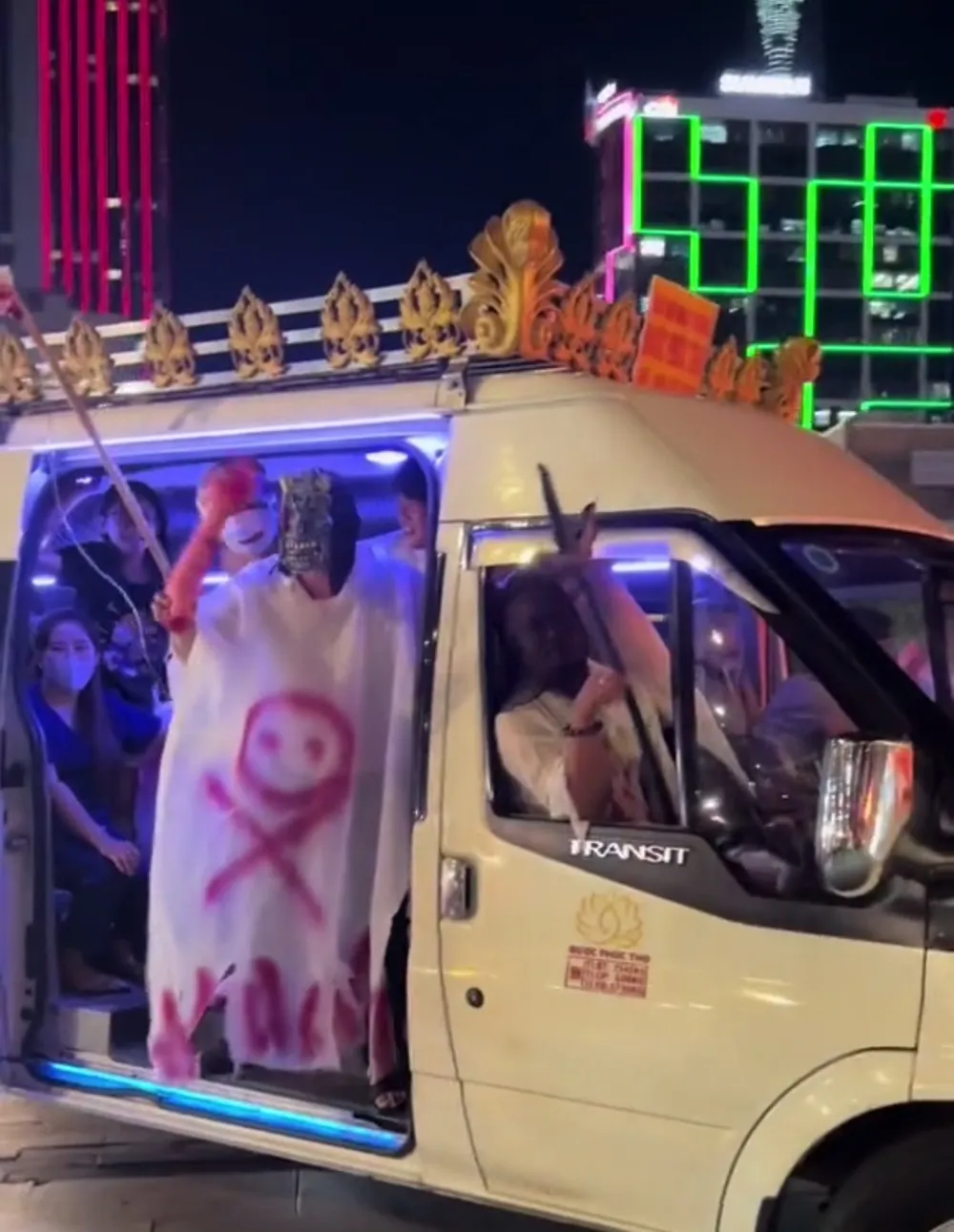 Trước đó, tối 31-10 và ngày 1-11, mạng xã hội lan truyền clip một nhóm người trên xe ô tô của cơ sở mai táng đi trên đường phố. Trong số những người trên xe hóa trang thành nhiều nhân vật ma quỷ. Những người này đứng trên xe mở cửa để chọc ghẹo người đi đường.
