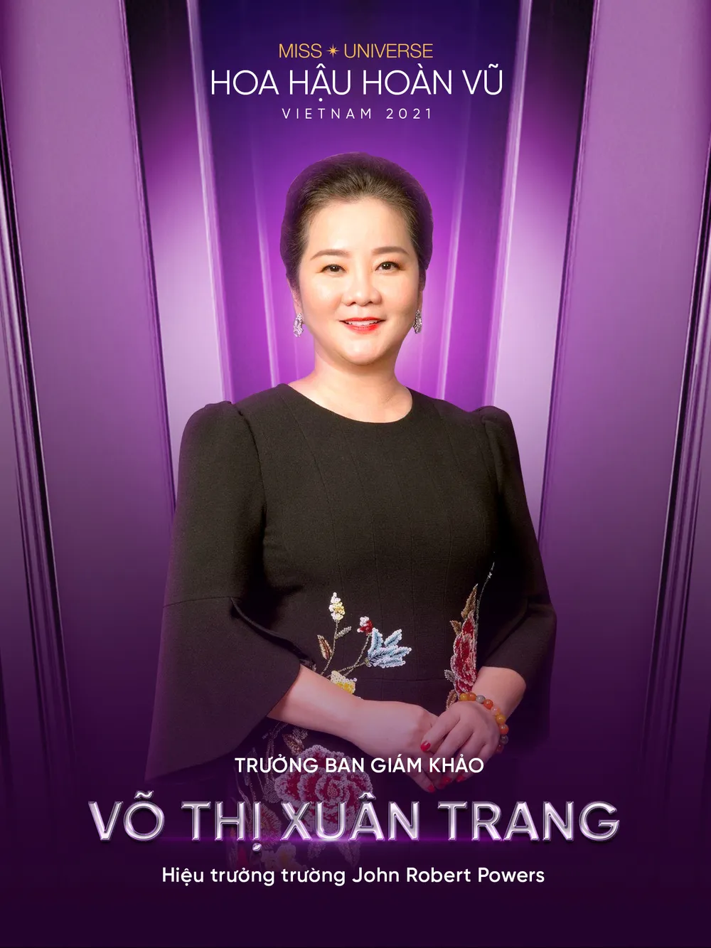 3 giám khảo trong số 7 vị trí Ban Giám khảo quyền lực của Hoa hậu Hoàn vũ Việt Nam 2021 được công bố gồm: Bà Võ Thị Xuân Trang - Hiệu trưởng Trường John Rober Powers; bà Lê Diệp Linh - Tiến sĩ, bác sĩ Nhân trắc học; Hoa hậu H’Hen Niê - Top 5 Miss Universe 2018, Hoa hậu Hoàn vũ Việt Nam 2017.